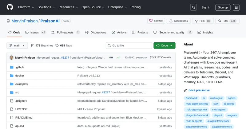 PraisonAI is a low-code multi-agent framework for automating tasks and solving complex challenges across messaging platforms.