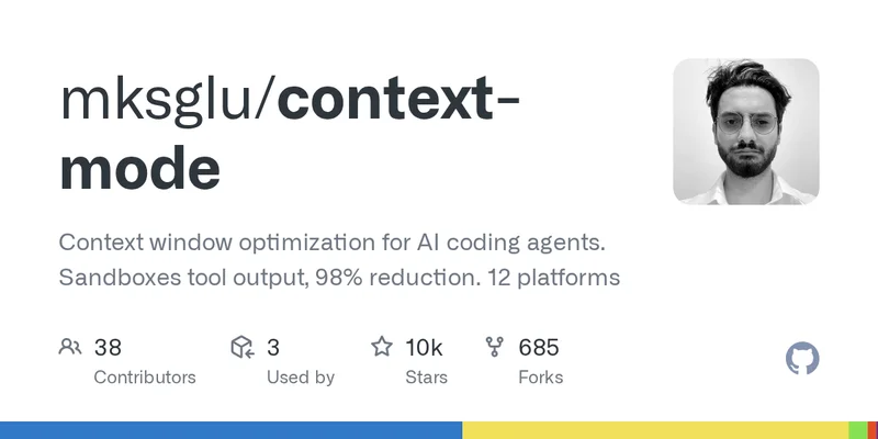 Context Mode optimizes context windows for AI coding agents, reducing data load and enhancing session continuity.