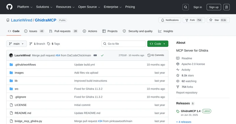 GhidraMCP is a Model Context Protocol server designed to enable LLMs to autonomously reverse engineer applications. It integrates with Ghidra, a software reverse engineering suite, and exposes various tools from Ghidra's core functionality to MCP clients.